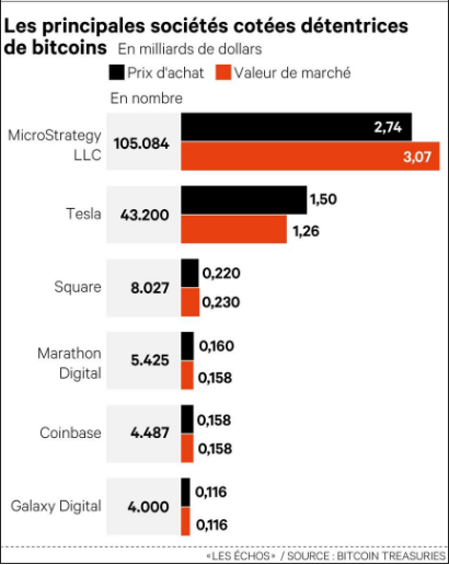 Ces entreprises ouvrent la voie vers la possibilité de placer une partie des réserves financières dans la cryptomonnaie la plus célèbre : le bitcoin.