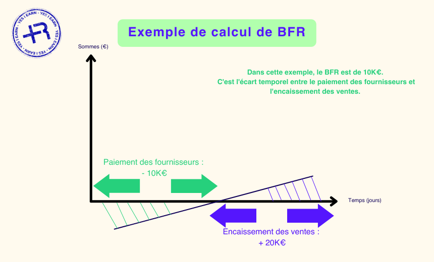 Le BFR est donc la différence entre les sommes en attente d’être encaissées (stocks et créances) et les sommes à décaisser (dettes).
